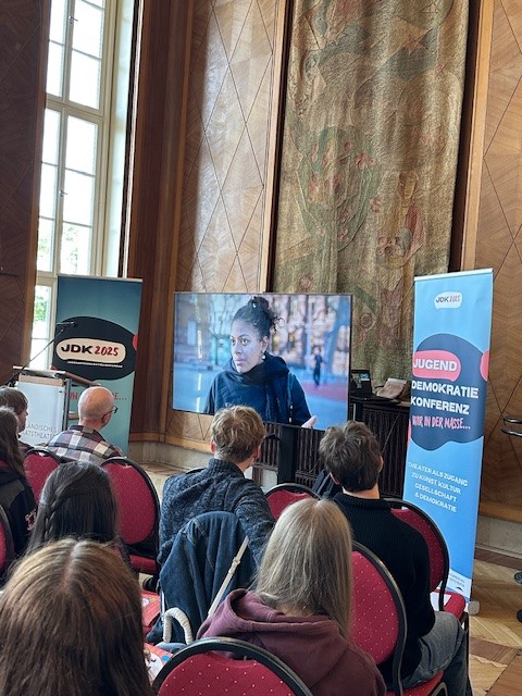 Die Jugenddemokratiekonferenz begann um 8:30 Uhr und endete gegen 16:00 Uhr und hat in den verschiedenen Räumen des Staatstheaters stattgefunden und von den theaterpädagogischen Fachkräften des Hauses in Kooperation mit dem Adolf-Bender-Zentrum gestaltet.
